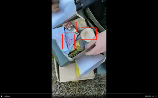 与此同时,乌军录制的视频中展示了部分包装中军粮的构成,如外壳显示为红棕色和白色的塑料包、圆白色包装的罐头等,也均可以从hamshenci的旅行笔记中找到对应物,分别是咖啡、水果冲剂和碎香肠罐头。