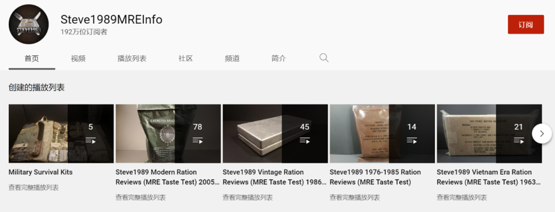 Steve1989MREinfo的YouTube频道经常展示并尝试食用来自20世纪80年代乃至二战时期的MRE。