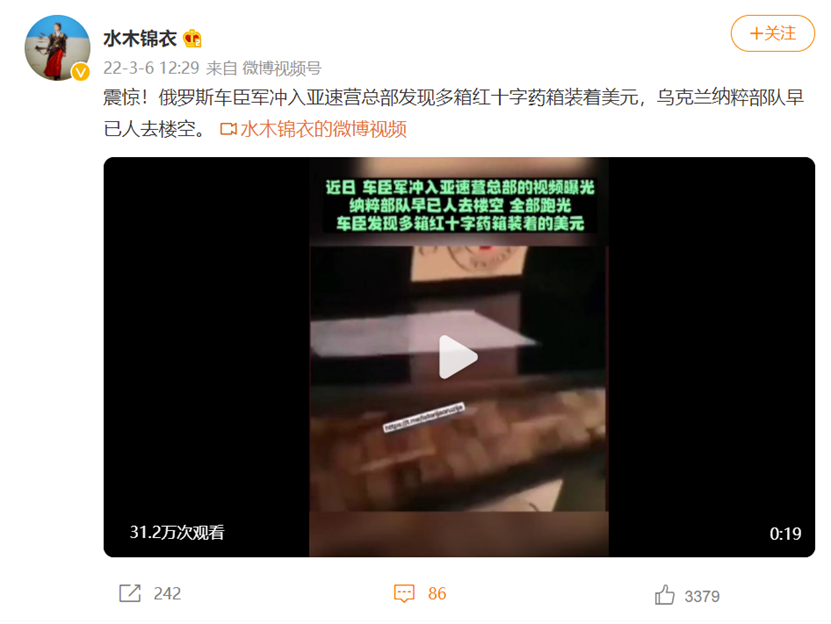 近日,中文网络流传一段视频,画面显示大量印有国际红十字委员会(ICRC)标志的药箱中盛有巨额美金。视频发布者称,这是在乌克兰执行军事行动的俄罗斯车臣武装攻破乌克兰“亚速营”总部后的画面。