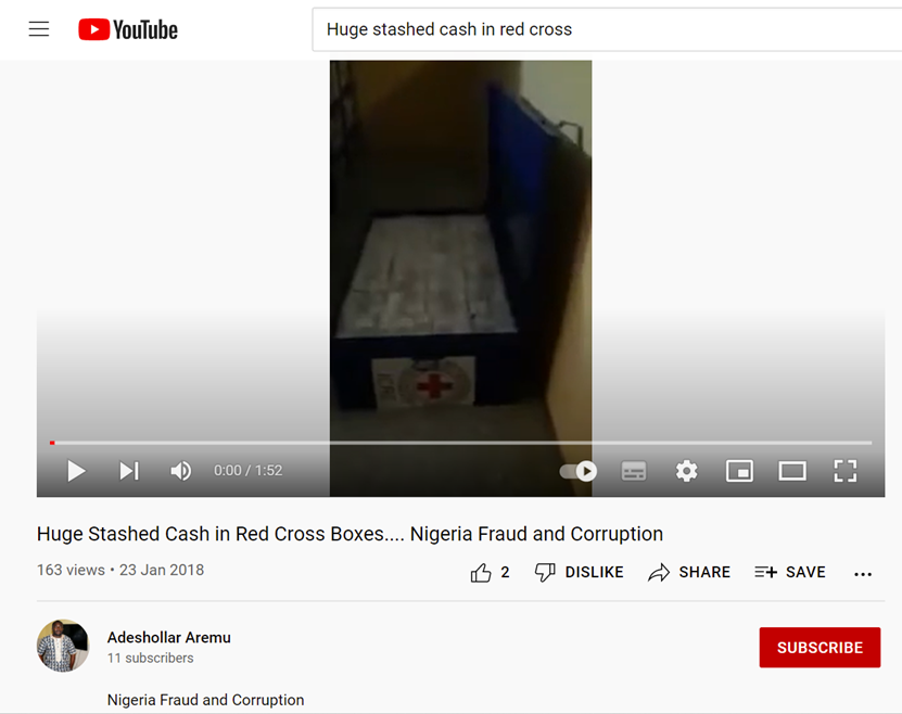 Adeshollar Aremu称其上传的视频揭露了尼日利亚政府的欺诈和腐败。但据尼日利亚媒体PRNigeria在2018年1月发布的一篇题为《热门视频:红十字药箱中的钱不在尼日利亚》的报道,来自尼日利亚防治腐败及其相关犯罪独立委员会(ICPC)及经济金融犯罪管理委员会(EFCC)的官员均否认了“尼日利亚存在装有大量美元现金的红十字箱”的说法。