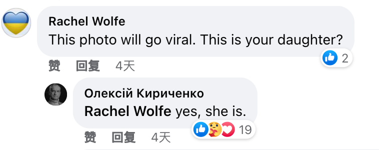 有网友在这条状态下面评论区询问基里琴科,图中女孩是否为他的女儿,得到了基里琴科的肯定回答。