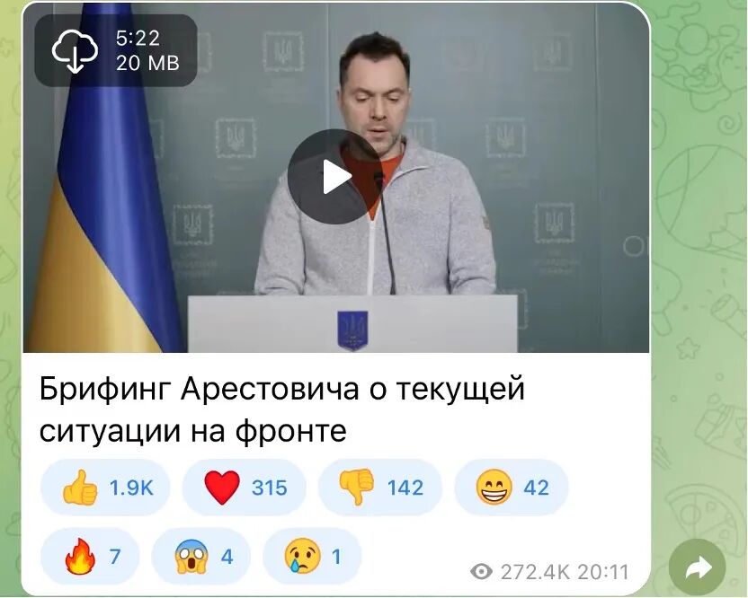 格拉申科Telegram频道信息截图。