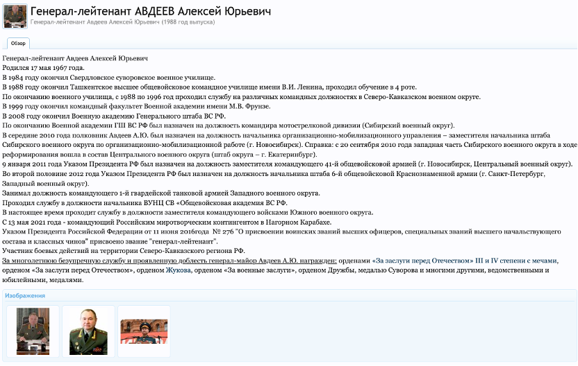 公开信息显示,阿列克谢·阿德杰耶夫1967年出生于现乌兹别克斯坦首都塔什干,曾经就读于塔什干高级集团军指挥官学校(Tashkent VOKU)。塔什干高级集团军指挥官学校官网的校友名单收录了一些荣誉毕业生,阿德杰耶夫以被囊括在内。其个人主页的简介一栏,就有以上这张阿德杰耶夫发表演讲的照片。
