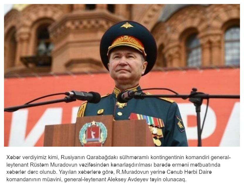 来自阿塞拜疆的军事新闻网站milli.az曾在2021年5月13日将这张图片用以亚美尼亚和阿塞拜疆争议地界纳卡地区的俄军维和部队继任负责人的报道中。报道提到该继任者的身份为俄罗斯南部军区副司令、中将阿列克谢·阿夫杰耶夫(Alexei Avdeyev)。