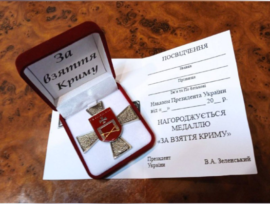 近日,一则在微博平台广泛传播的消息称,俄军在乌克兰南部赫尔松地区的一间军队办公室中发现了为“占领克里米亚”而准备的勋章和证书,或意味着乌克兰在此次俄乌冲突爆发前就已准备好进攻克里米亚。随文的配图展示了该“勋章”与“证书”的制式。