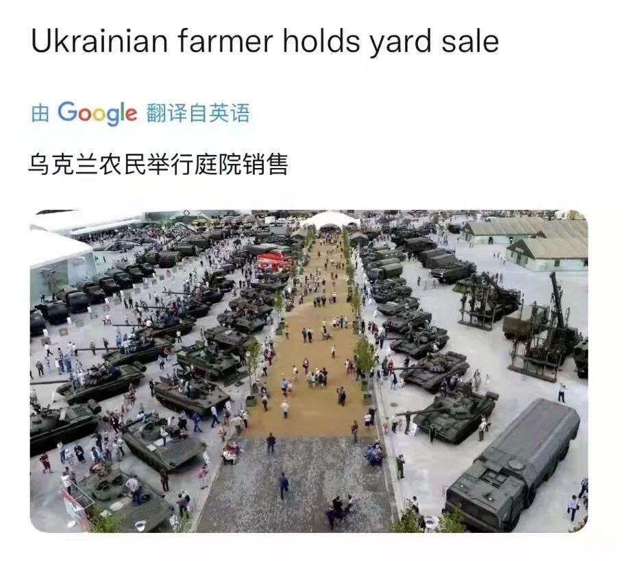 近日,在各微信群中流传一张推特截图,据称为乌克兰农民举行“庭院销售”现场照片。