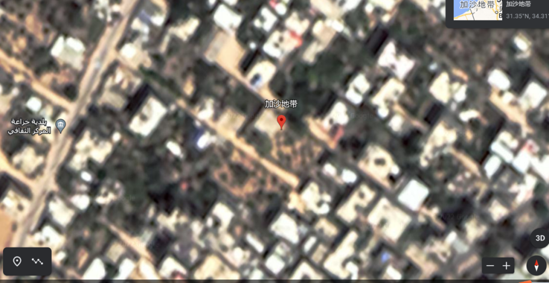 加沙地区在谷歌地球上成像模糊。