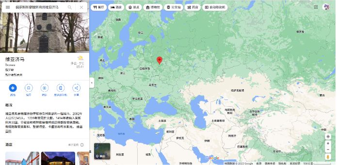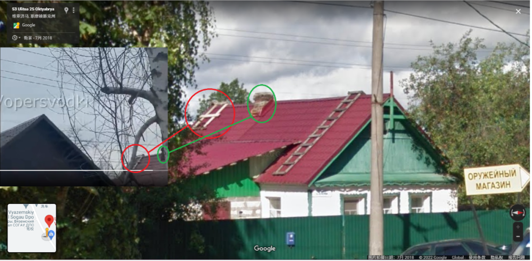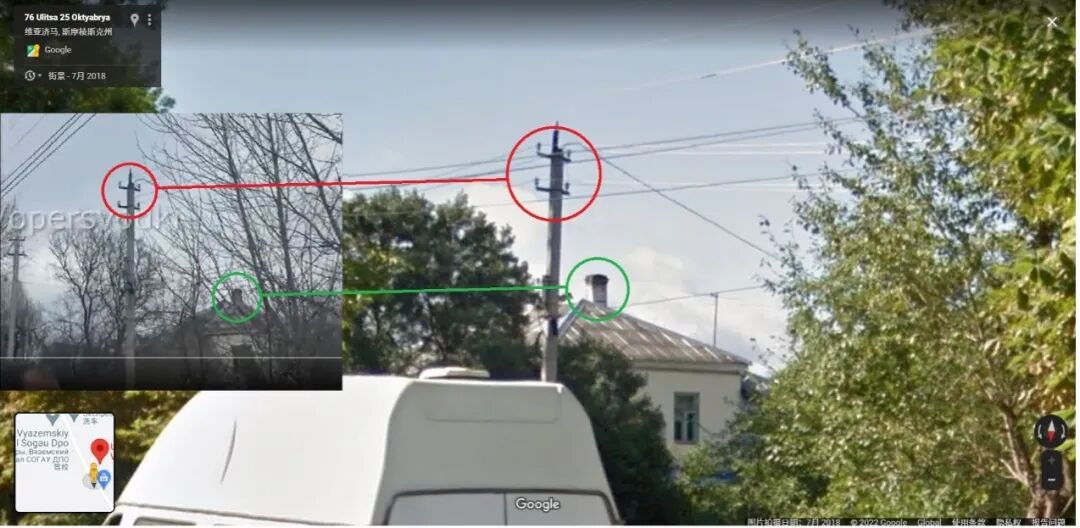 谷歌地图中收录有2018年7月拍摄的维亚济马市街景。通过比对建筑细节,可以断定该视频拍摄于Ulitsa 25 Oktyabrya大街,而并非推特网友所说的“马里乌波尔”。