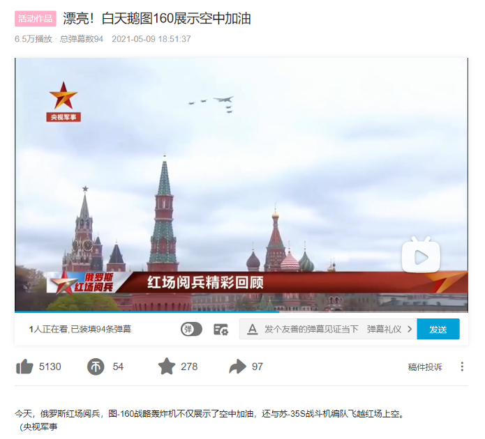 此外,在去年的胜利日阅兵中,也有过图-160展示空中加油的先例。