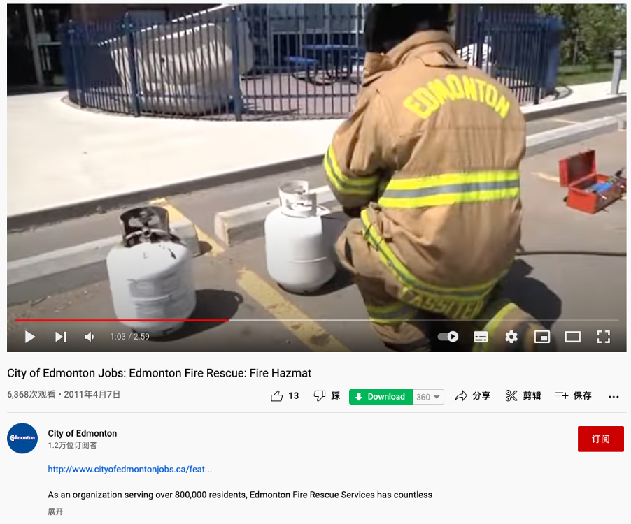 埃德蒙顿市YouTube频道2011年4月消防部门宣传视频截图。