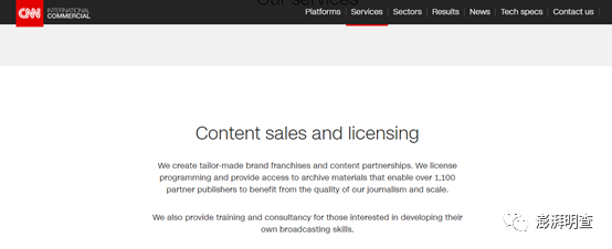 品牌授权合作是CNN国际商务平台(CNNIC)与地方媒体最常见的合作模式。CNN国际商务平台官网介绍, CNN能够为其商务合作伙伴量身订造特许经销权,允许合作方使用其存档的材料,并为合作方提供有关报道技能的培训和咨询服务。