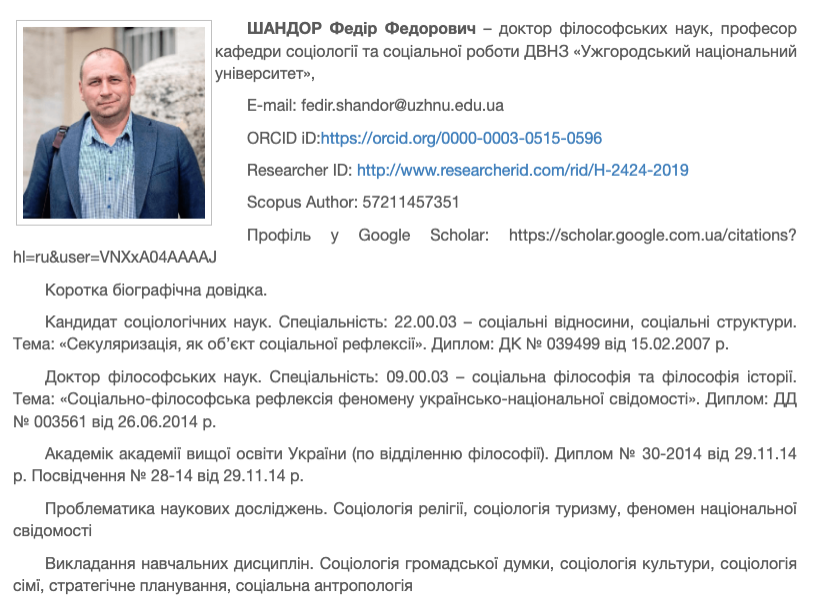 在谷歌上搜索关键词“Федір Шандор”(费迪尔·尚多尔),结果导向乌克兰乌日霍罗德国立大学(UZHNU)大学的媒体宣传中心。5月5日,乌日霍罗德国立大学发布了一篇宣传稿,其中使用了这张流传甚广的图片,确认了照片中的人为该校社会学教授。