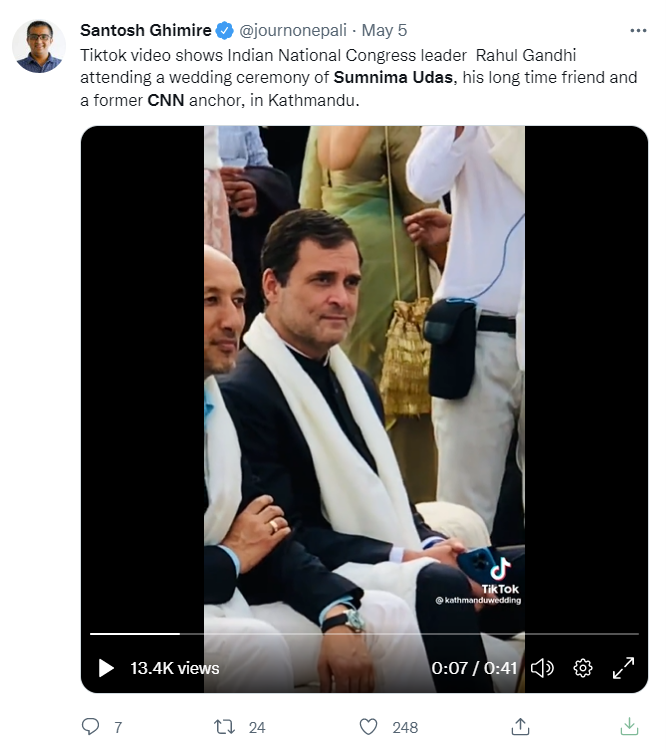 5月5日,推特用户@Journonepali在平台上传了的一段视频,证实苏姆尼玛·乌达斯的婚礼招待会已如期举行,且甘地本人出席了这场活动。