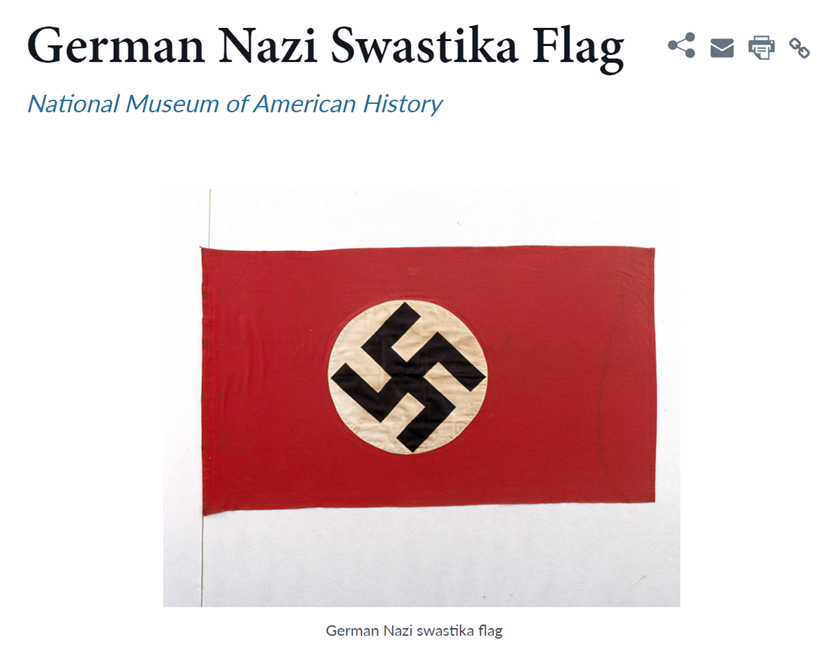 “史密森学会”官网收录的来自美国国家历史博物馆的德国纳粹“卐”字旗图片。