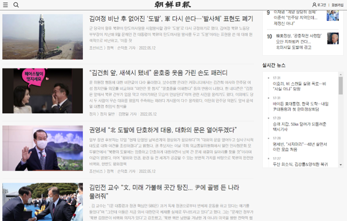 《朝鲜日报》在5月12日刊载的有关朝鲜的部分报道,未有与“枪杀工人”相关消息。
