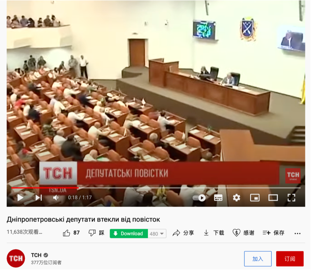 TSN YouTube频道上2014年旧闻,题为“第聂伯罗彼得罗夫斯克市议会议员逃避兵役”。