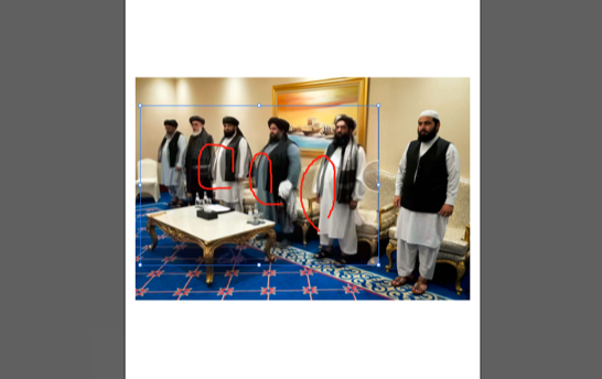 塔利班和蓬佩奥会谈原图中,相同服装材质和颜色对比条件下图形轮廓显示的亮度及对比度基本一致。