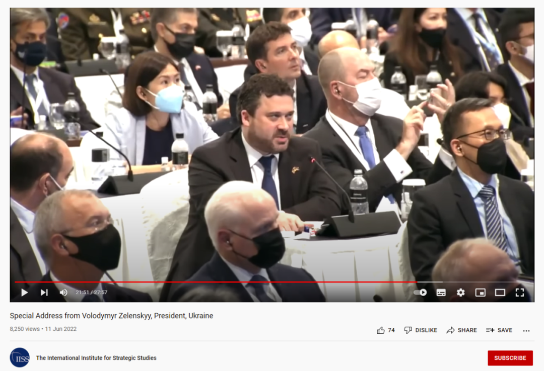 IISS官方YouTube频道上传了泽伦斯基演讲及问答环节的完整视频。