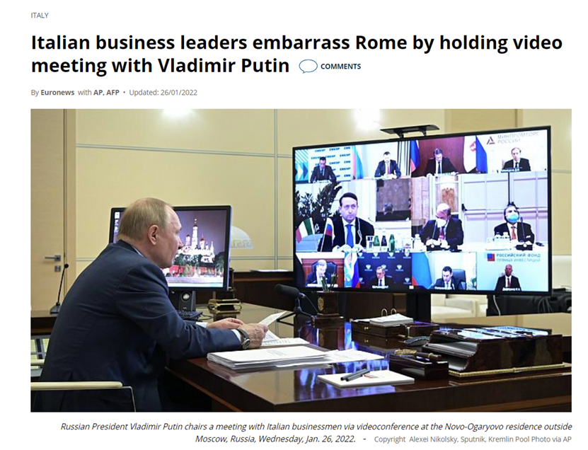 欧洲新闻台在1月26日报道普京和意大利商界领袖进行视频连线。