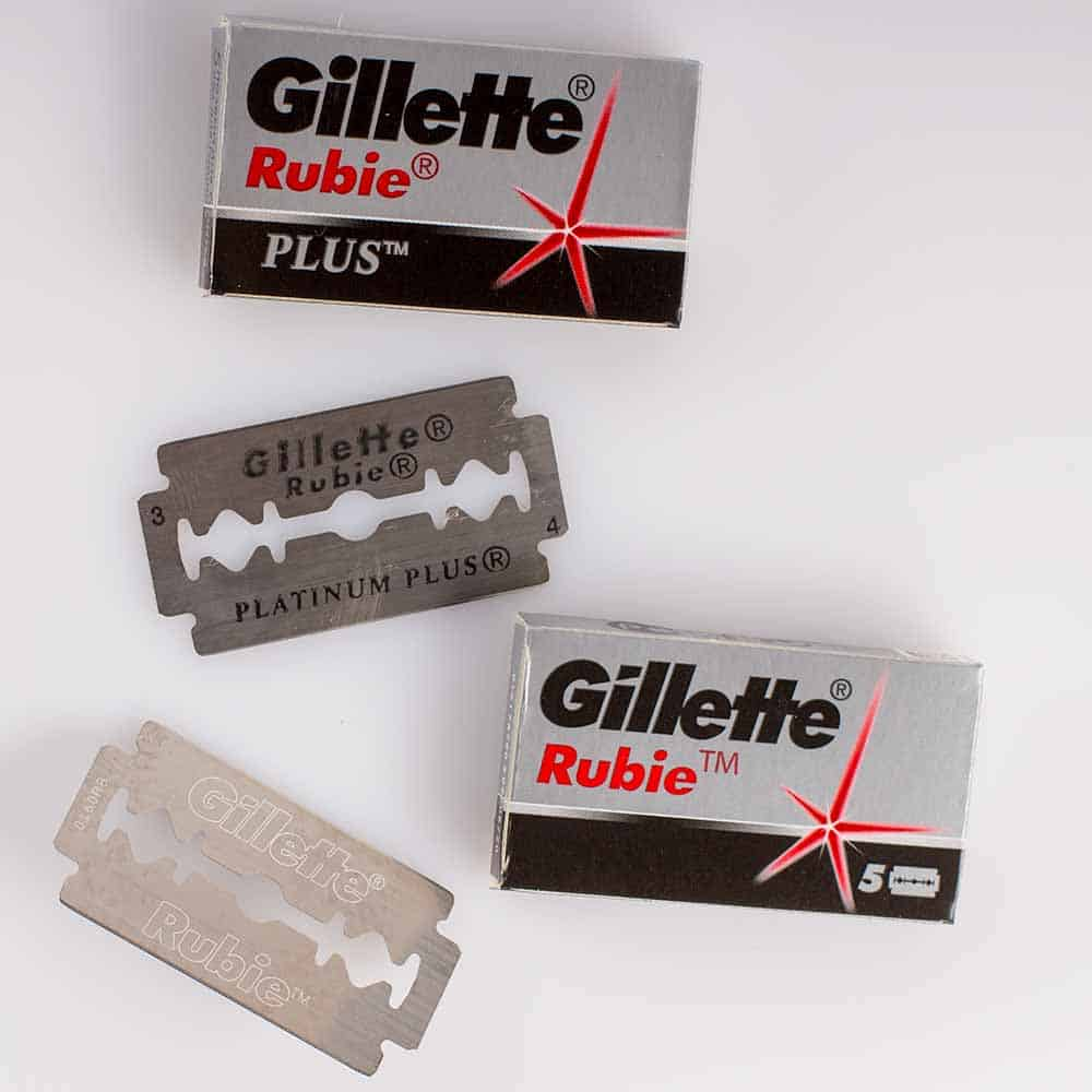 相关微博配有两张图片。图1中传单贴纸边缘贴有吉列剃须刀鲁比“白金加”(Rubie Platinum Plus)刀片。图2中,一幅乌克兰国徽三叉戟海报被贴在电线杆上,海报已经有部分被撕去。