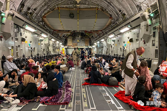 当地时间2021年8月19日,阿富汗喀布尔,阿富汗民众乘坐美军飞机离开阿富汗。