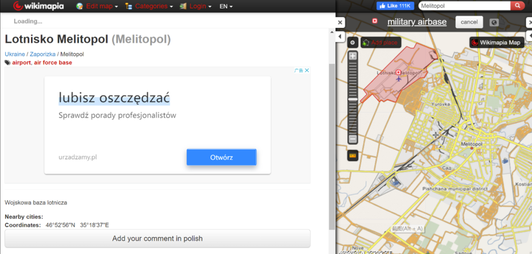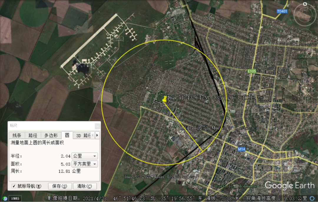 结合Wikimapia信息,网友定位的拍摄地2.04公里半径左右有梅利托波尔市内仅有的空军基地。