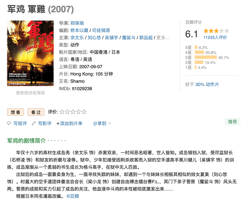 2007年,《军鸡》在香港被改编成同名电影,著名演员吴镇宇在其中饰演黑川健儿一角。