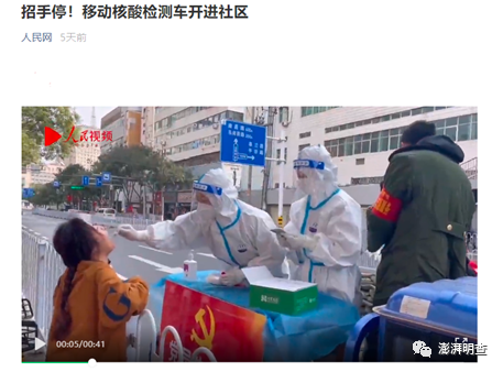 人民网原视频中第10至30秒显示,有市民在“招手停”主动停下并进行了核酸检测。在视频第33秒处,有路人接受记者采访,被问及移动核酸车检测是否方便时回应道:“方便,我们市民能够随时享受到这种公共待遇(服务)”。