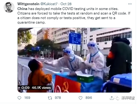 近日,推特上流传一段视频,称中国在某些城市部署了移动核酸检测点,“随机”抓取市民“强迫”其接受检测。市民若不服从或检测结果呈阳性,就会被送去集中隔离。