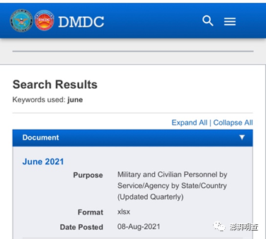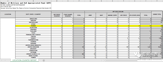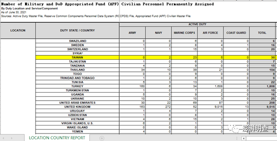 检索与美国国防部相关资料可以发现,其下属的人力数据资源中心(DMDC)存有关于美国国防部按国家/地区分列的军事和文职人员统计数据。
