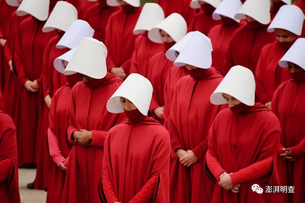 经核查,这张照片并非现实中的真实场景,而是根据《使女的故事》剧照制作成的讽刺图片。