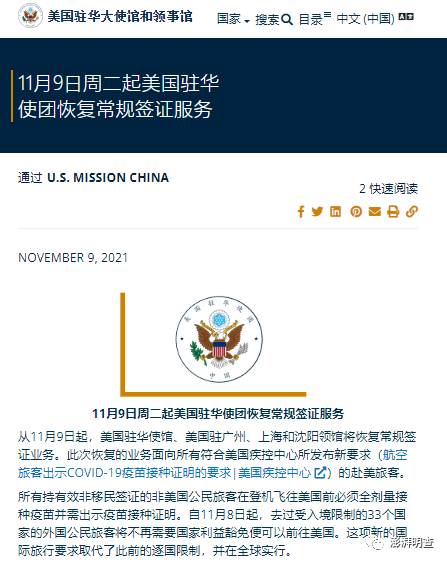 美国驻华大使馆在其官方微博也宣布了这一消息,美驻华大使馆和领事馆官网首页亦有相应的信息公示。