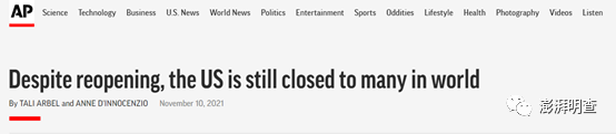 这三家通讯社中,只有美联社在11月10日的一篇报道中提到,尽管美国决定重开国境,但要在疫情期间去美国旅行还是没那么容易。
