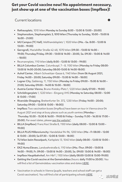 除FunPalast外,目前也没有消息显示有一定规模量的奥地利妓院采用了“接种疫苗换服务”的方案。经核查,由维也纳市健康服务部门运作的疫苗注册网站impfservice.wein上显示的疫苗接种地点中未包括与妓院相关的地址信息。