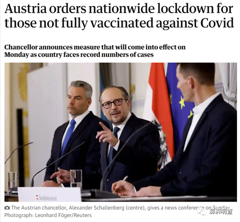 而参考奥地利社会事务、卫生、保健和消费者保护部官网消息,奥地利从11月8日起收紧了其防疫政策,将之前的3-G(检测、接种、康复)政策改为2-G(接种、康复),只有完全接种或从新冠中康复的公民可以出入娱乐场所。且据《卫报》报道,从15日起,奥地利政府将对未完全接种疫苗的公民进行封锁。