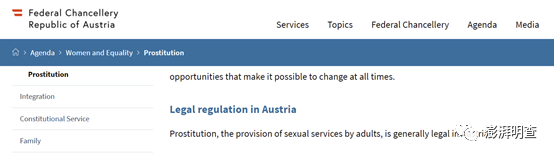 奥地利联邦总理府官网信息显示,在奥地利,成人向他人提供性服务通常是合法行为。