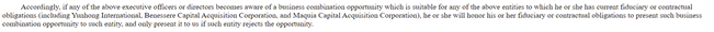 同时Yunhong International也明确,如果奥兰多等公司执行官或董事在服务其它公司时意识到存在和Yunhong International潜在的合并机会,他们有义务要将投资机会呈现给Yunhong International。