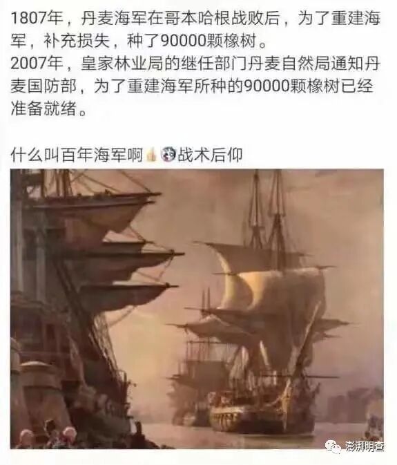 前几日,中外社交平台上流传一则逸闻,称1807年哥本哈根战役失利后,丹麦人为重建海军,种下了90000棵橡树。200年过后,也就是2007年,丹麦自然局通知该国国防部,他们的橡树已准备好了。