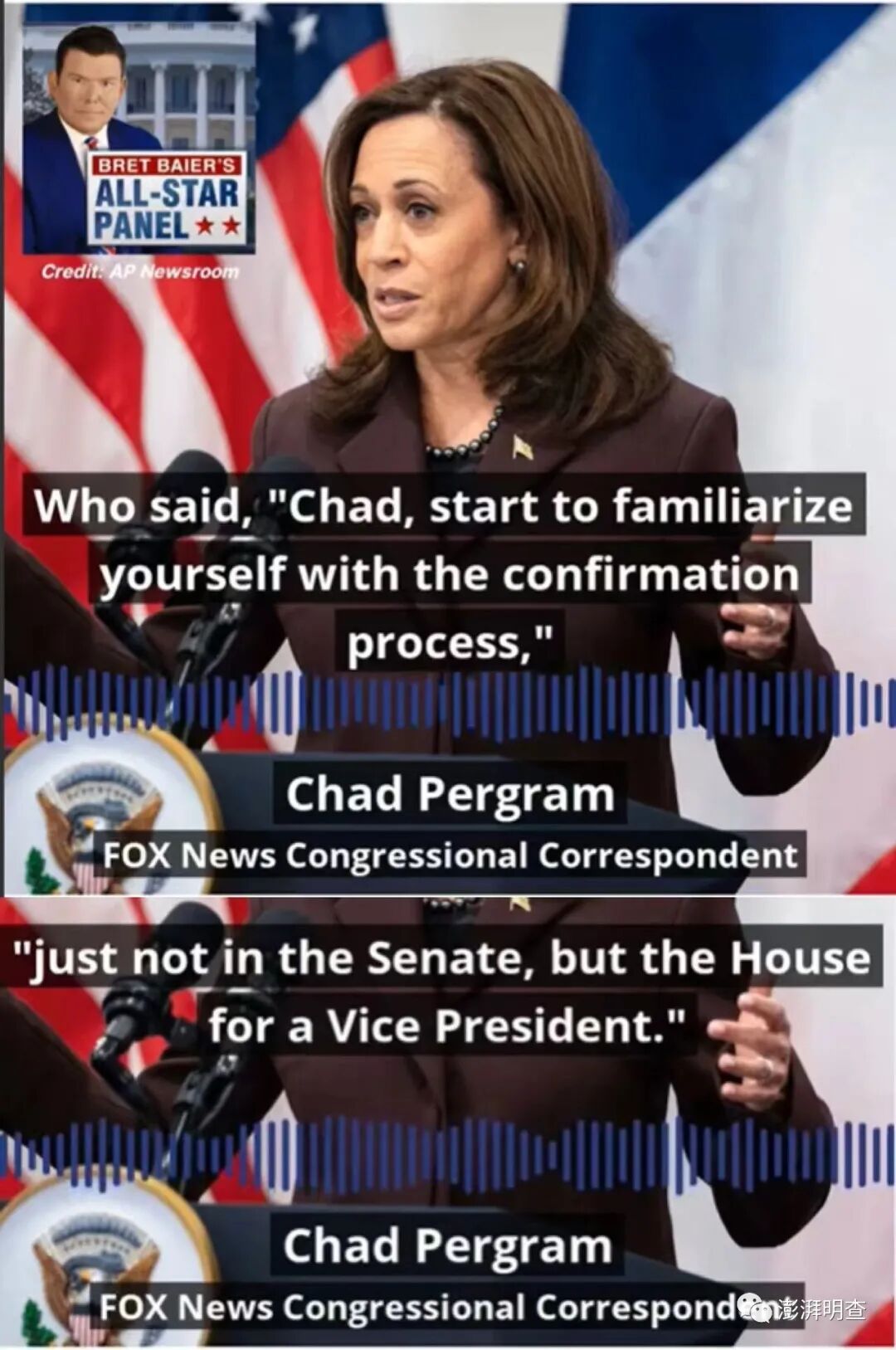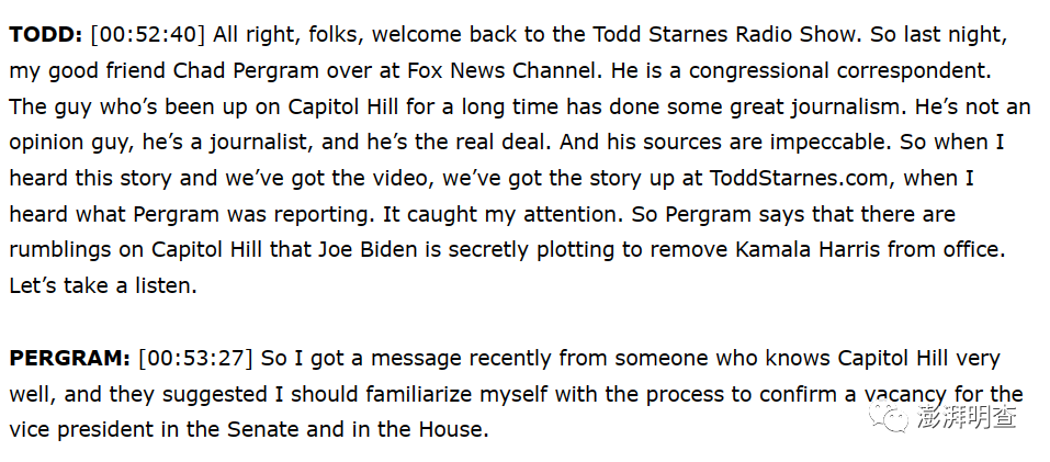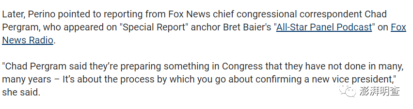 但是,《五人》并非“撤换副总统”这一传闻的来源。这一消息最初由福克斯新闻首席国会记者查德·佩格莱姆(Chad Pergram)披露。