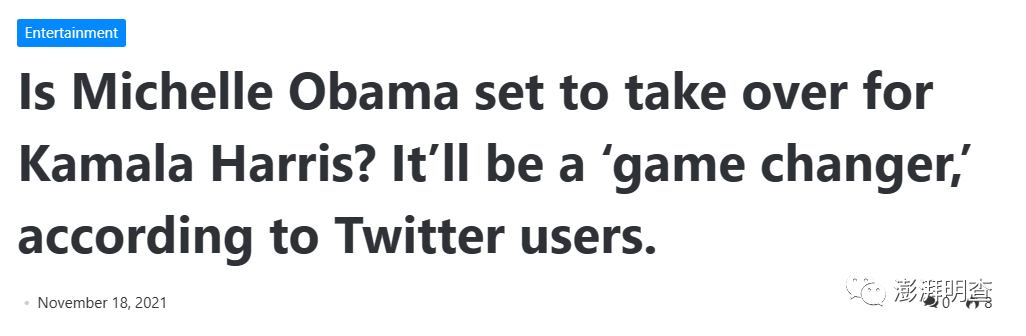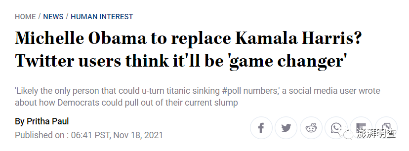 总部在印度班加罗尔的娱乐新闻网站Meaww 11月18日报道,题为《米歇尔·奥巴马替换卡玛拉·哈里斯?推特用户认为这将“改变游戏规则”》