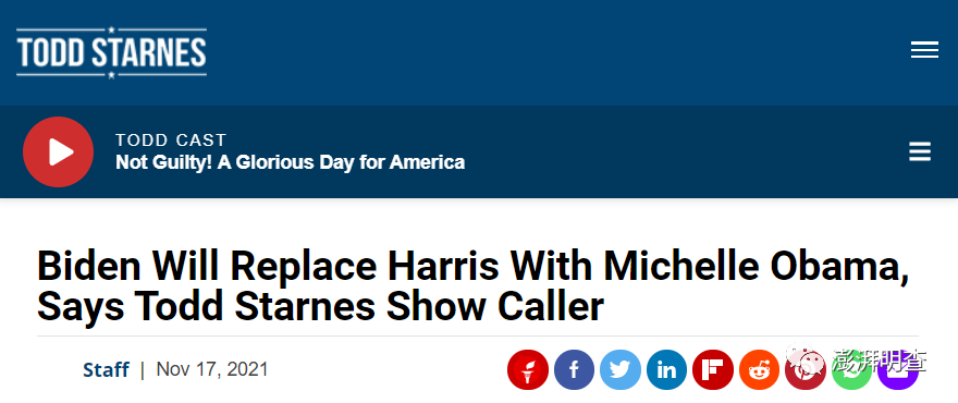 前福克斯新闻记者自己开设的博客节目《托德·斯达恩斯秀》也以“拜登将以米歇尔·奥巴马替换哈里斯,托德·斯达恩斯秀连线听众说”为题延伸讨论。