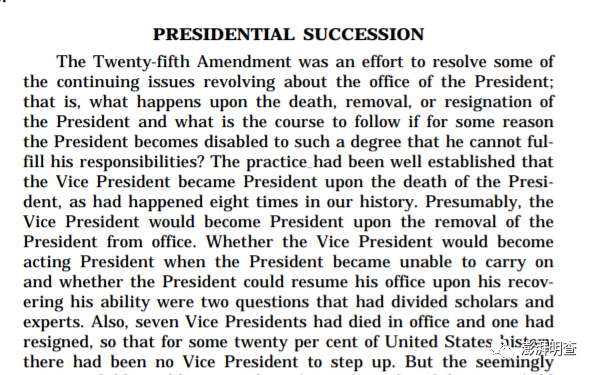 节目还提到,上一次出现这种“确认新副总统”的情况还是在1974年。尼克松总统下台后,副总统福特继任总统并提名尼尔松·洛克菲勒(Nelson Rockfeller)为副总统。这种情况并不罕见,事实上,美国历史上曾有8位副总统升任总统。