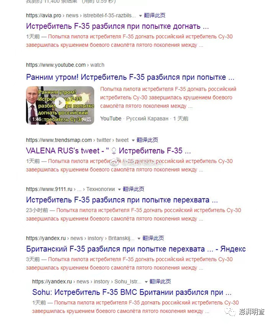 在推特、脸书、微博上对“F-35拦截Su-35”关键词进行查询,仍然只能寻找到来自外网的报道,并声称该消息来自中国“搜狐”。