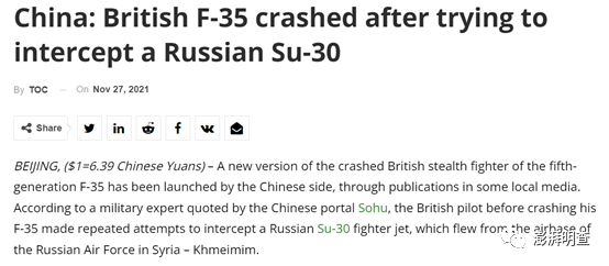 Avia.Pro和“保加利亚军事”的报道中均提到一段所谓对中文内容的俄/英文翻译,称根据“搜狐记者”的说法,这架英国战机在坠毁前多次尝试拦截Su-30。“(英)国防大臣华莱士间接确认了这一消息,声称当北约(NATO)舰船从太平洋返回欧洲而穿越地中海途中,(F-35)总共有30次想要拦截俄罗斯飞机的行为。显然,这对伦敦来说是一个耻辱。”