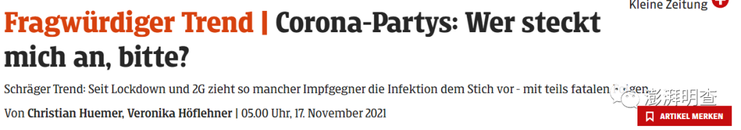 奥媒《皇冠报》(Kronen Zeitung)11月27日的文章中将“新冠派对”称为“糖果派对”——阳性确诊病人舔舐一口糖果,然后将其递给在场的其他参与者。