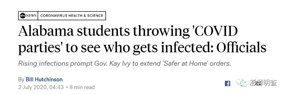 2020年7月,美国阿拉巴马州塔斯卡卢萨市就曾发生类似活动。据美国广播公司(ABC)报道,当地大学生举行大型派对,故意邀请新冠患者,“比赛看谁能先染上病毒”,把这当作一场游戏。