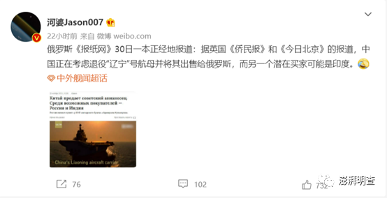 近日,微博上流传一则消息,称最近有俄媒援引英媒报道,中国的航空母舰 “辽宁”号在退役后可能会被出售给俄罗斯,潜在的买家还包括印度。