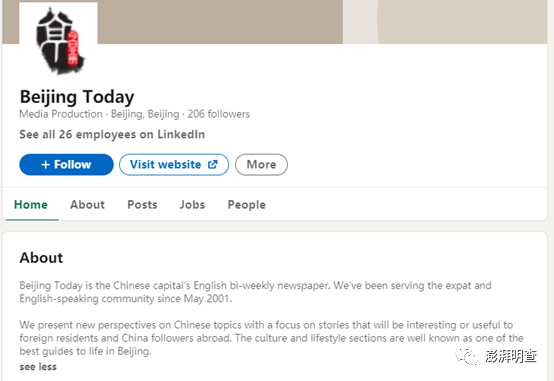 在领英上搜索Beijing Today,如今还能看到该机构英文介绍信息,以及一则发布于7年前的招聘启事。中国知网上亦有两篇发表于本世纪初的文章,均与《今日北京》创刊有关。