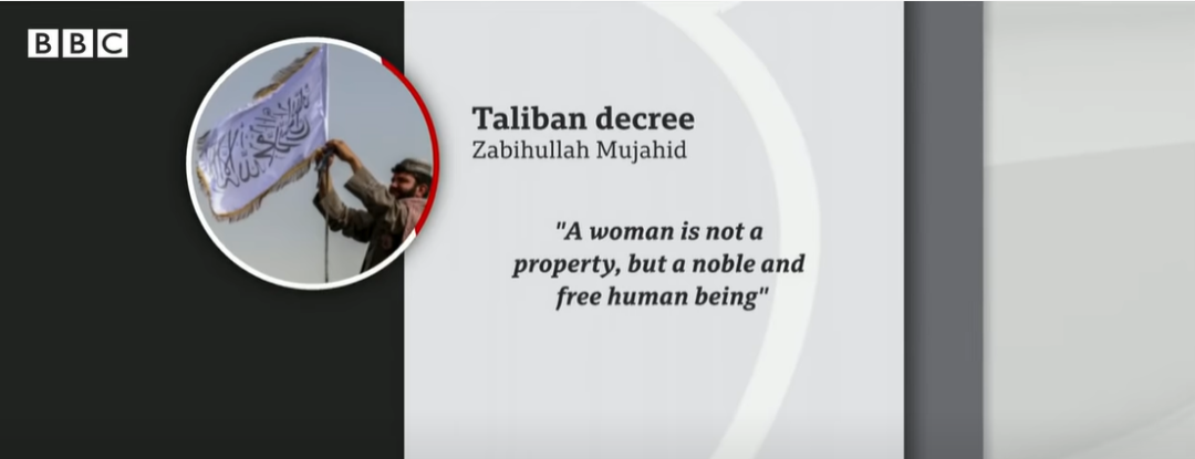 8月15日,就在阿富汗塔利班夺取首都喀布尔当天,BBC的一位女主播哈基姆(Yalda Hakim)在直播节目过程中突然接到了来自阿塔发言人沙欣(Suhail Shaheen)的电话。后者借由连线采访向阿富汗民众保证,他们不会对任何人报复,并且将尊重妇女的权利,允许她们接受教育。