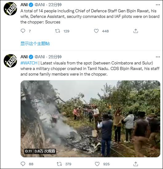 当地时间12月8日,载有印度国防参谋长比平·拉瓦特(Bipin Rawat)等14名乘客的空军米-17V5在泰米尔纳德邦(Tamil Nadu)境内坠毁,除飞行员仍在抢救外,其余人全部遇难。日前,中、英、印网络上传有多张声称系飞机坠毁现场的照片。